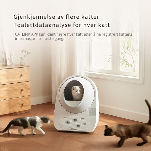 Flere interne sensorer overvåker aktiviteten kontinuerlig og sørger for at rengjøringen først starter når enheten er helt tom. Denne sikkerhetsfokuserte tilnærmingen lar katten gå fritt inn og ut, mens systemet håndterer hver syklus stille og automatisk i bakgrunnen.